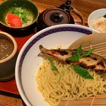 246を二子玉方面に走ります。以前からBMしてたラーメン屋さんがこちら↓↓↓「鮎ラーメン 二子玉川店」さんへ来ました♪到着はオープン18時の5分前並びは0です。道路からは店のカウンターが見え、大きな「鮎」の暖簾が雰囲気抜群♪京都っぽい+祭り感?+解放感も◎そう... ... 鮎丸ごと一匹入ったラーメンで有名な店です。週末の夜8時頃に来訪しました。7席の狭い店内で店主1人で作っているお店。6人ほど並んでいて、15分ほどで案内されました。回転は早い... ... なんとも端切れ悪いタイトルをつけてしまいましたが、正直こんな感じ。夏限定で昼はつけ麺。夜はレギュラーメニューとのこと。今回はつけ麺狙いだったので、お昼に行ってきました。... ...
